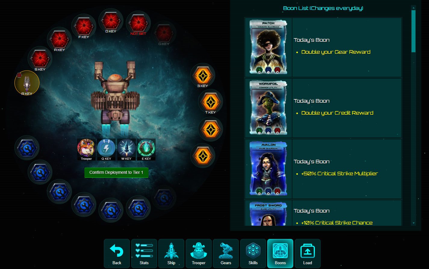 The Boon System adds daily variety and bonuses to your Troopers. Every day, a new set of random Boons is assigned to all non-Workhorse Troopers.